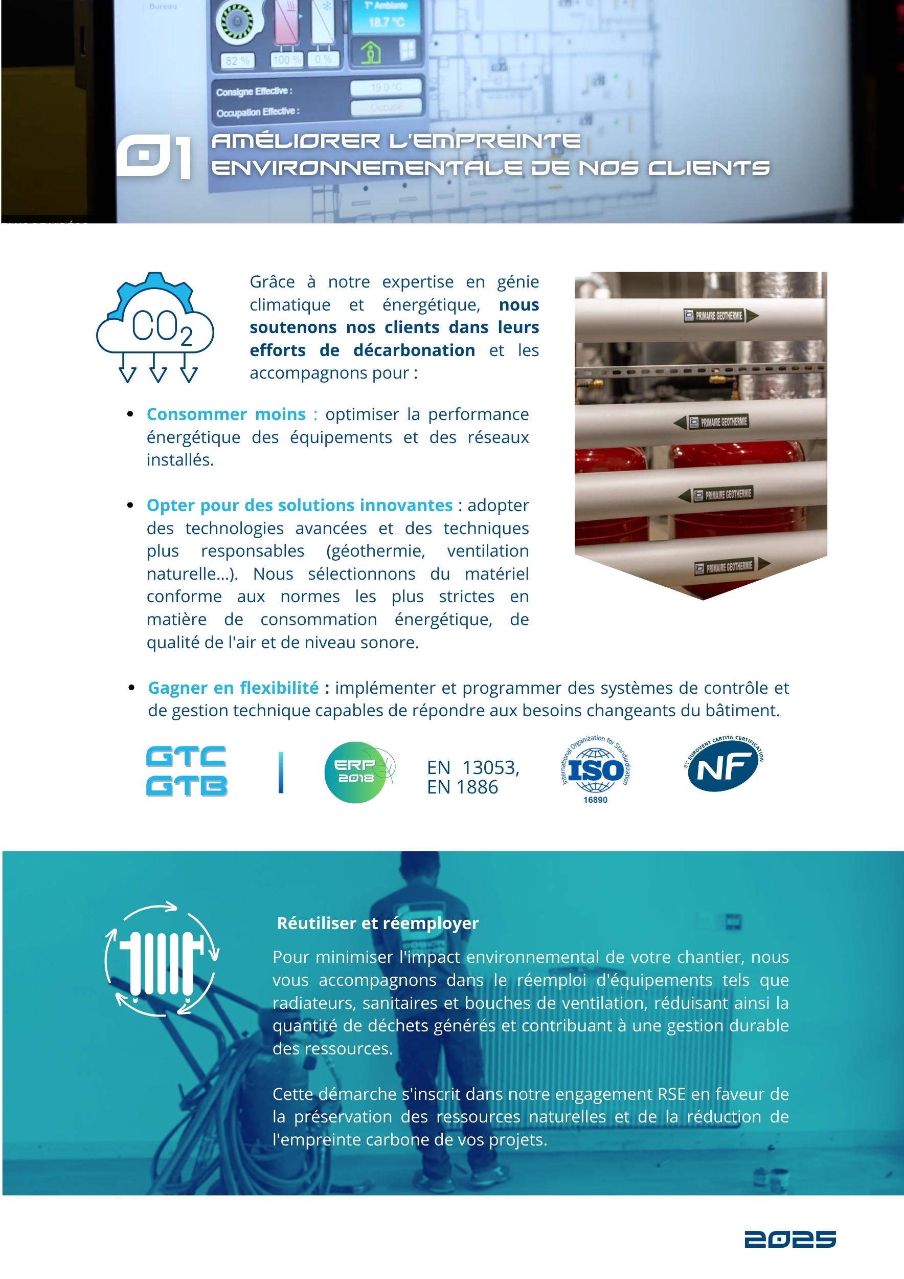 Dans un contexte où les économies d’énergie et la décarbonation sont devenues un enjeu majeur, notre métier nous offre l’opportunité de participer à construire des projets répondant aux nouveaux défis écologiques et sociétaux.