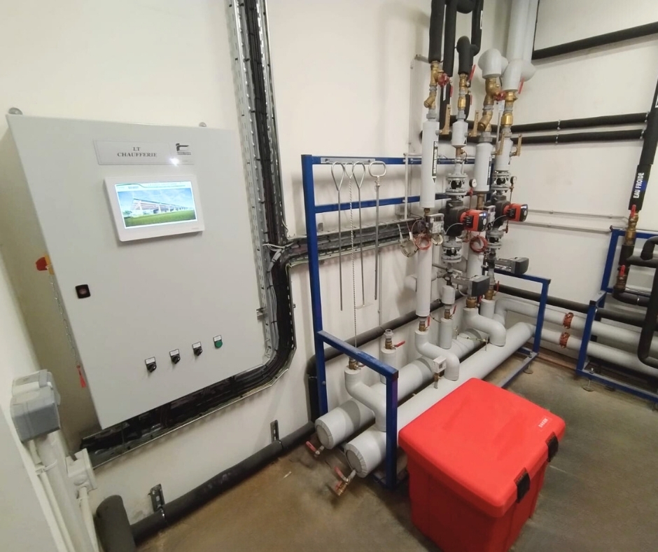 Notre intervention a débuté par la réalisation des plans 3D des locaux techniques, puis la préfabrication de la panoplie chauffage, gestion de l’eau potable et de son installation dans la chaufferie. Cette panoplie alimente deux circuits d’une dizaine de radiateurs et d’une vingtaine de panneaux rayonnants.